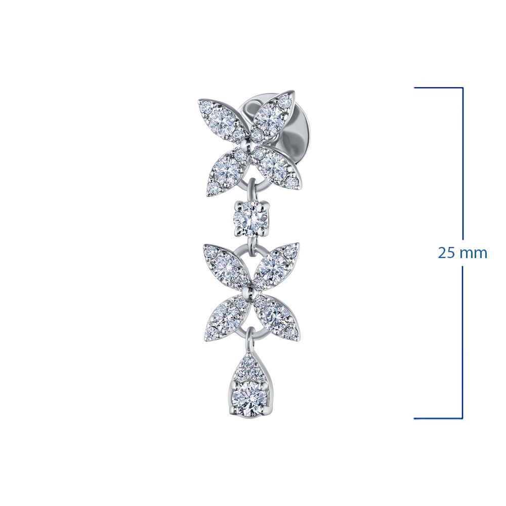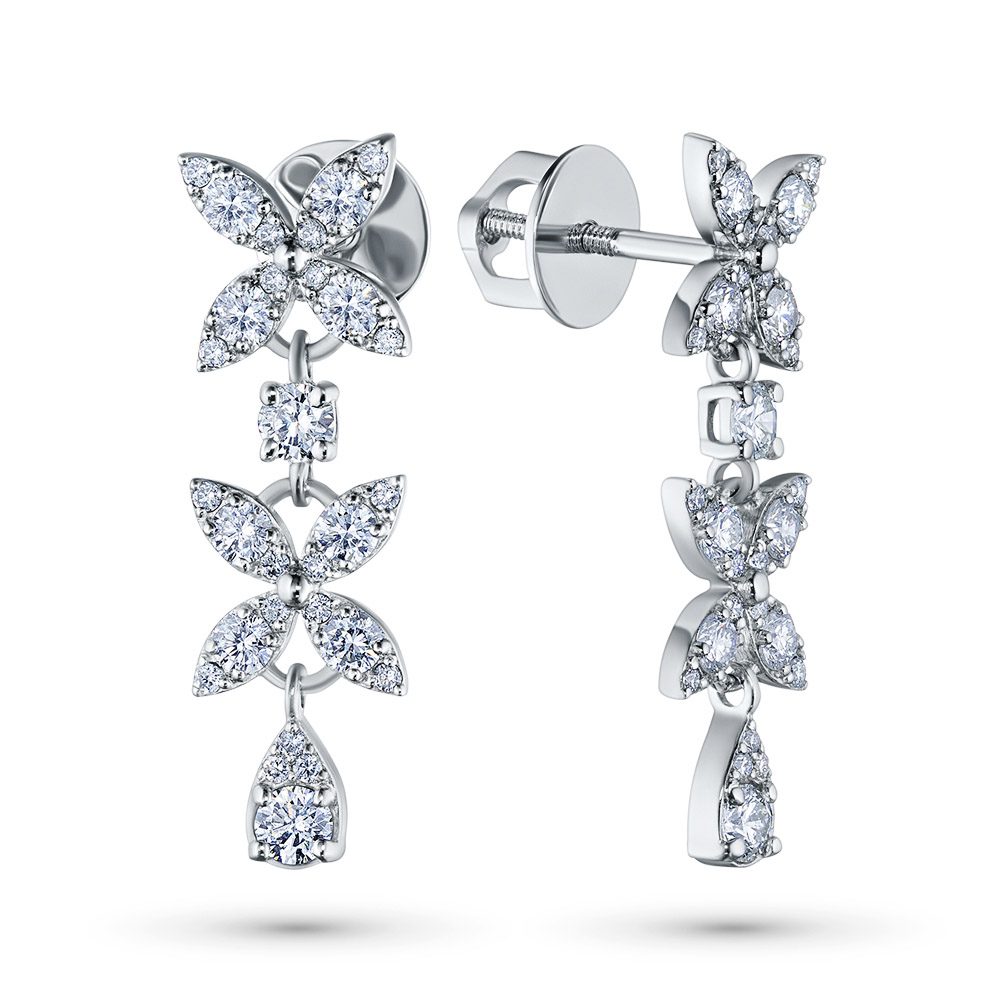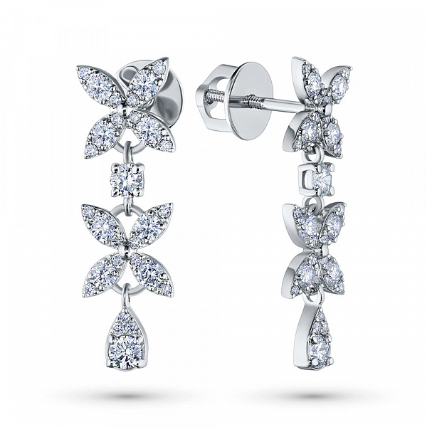 14K White Gold Earring Studs with 54 Round-Cut Lab-Created Diamonds 1.428 CT.TW - an excellent addition to your jewelry collection. Jewelry with natural Diamonds produced at the "EPL". White gold emphasizes the play of light on facets of a diamond, not afraid of water and is suitable for everyday wear. Our goods are sold only in retail showrooms.