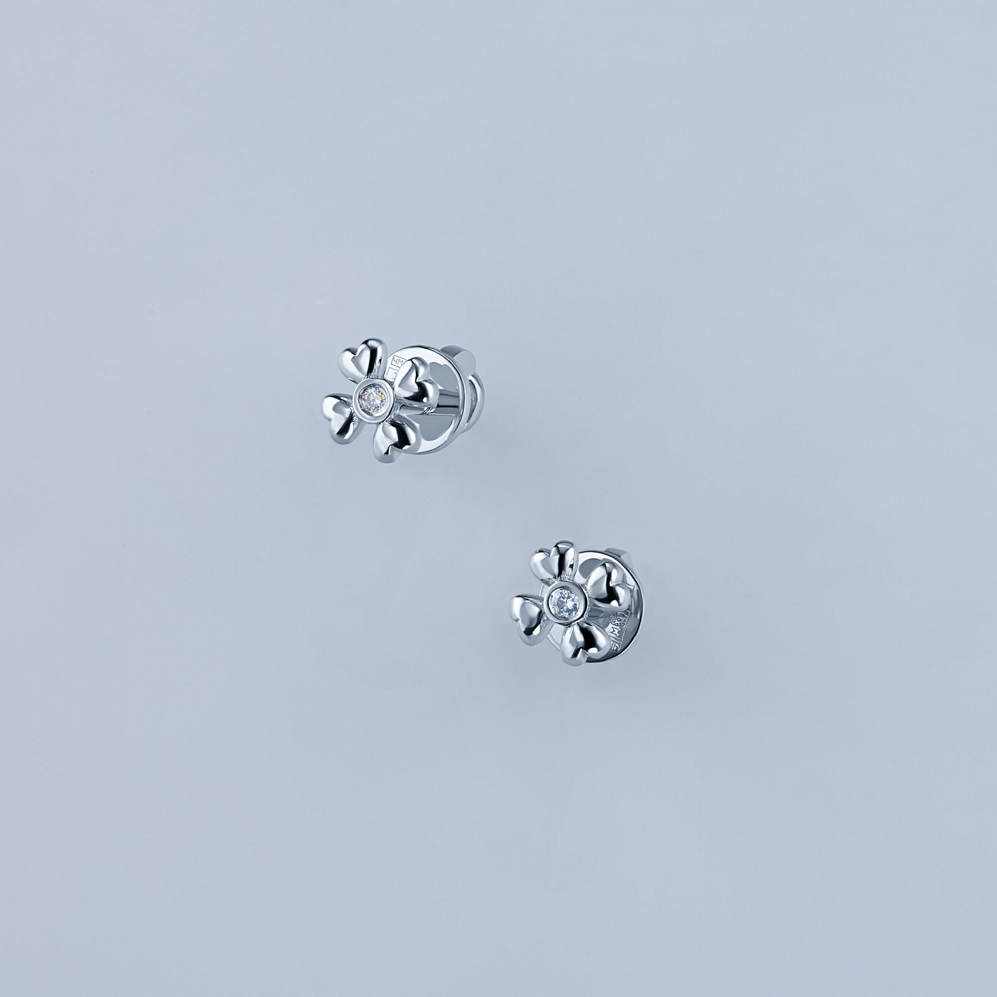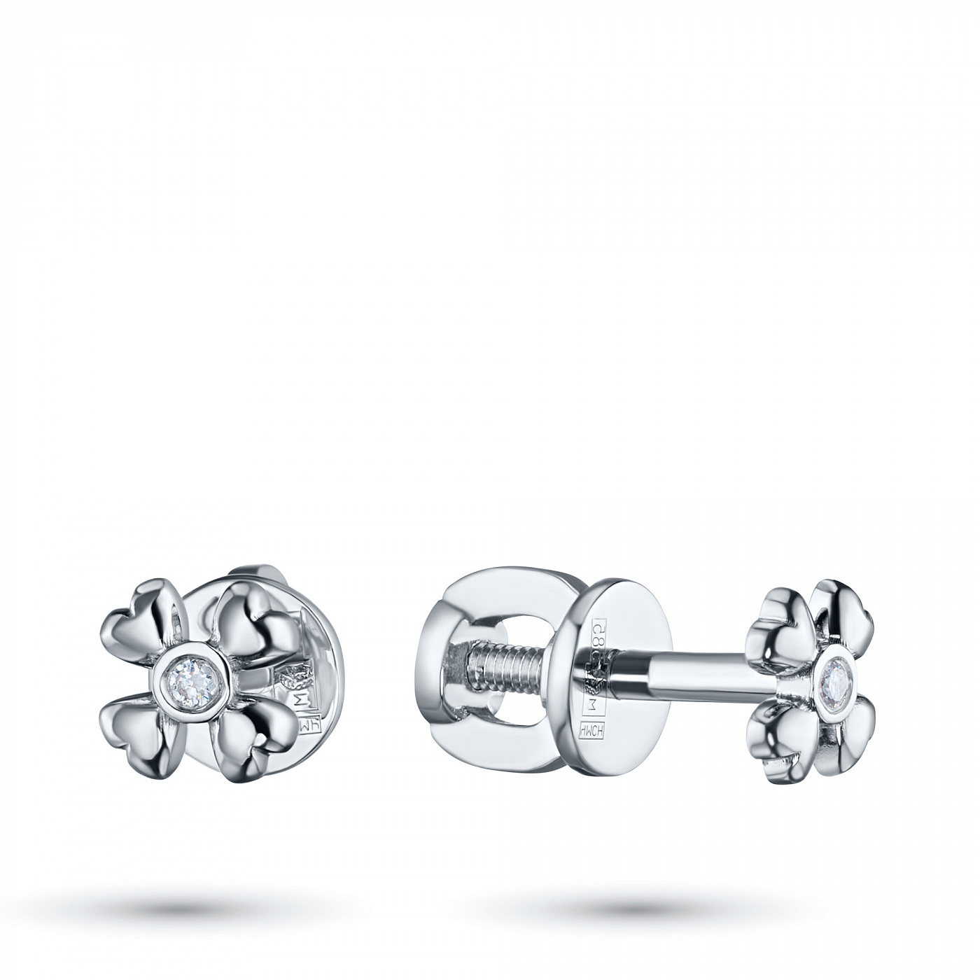 14K White Gold Earring Studs with 2 Round-Cut Lab-Created Diamonds 0.015 CT.TW - an excellent addition to your jewelry collection. Jewelry with natural Diamonds produced at the "EPL". White gold emphasizes the play of light on facets of a diamond, not afraid of water and is suitable for everyday wear. Our goods are sold only in retail showrooms.