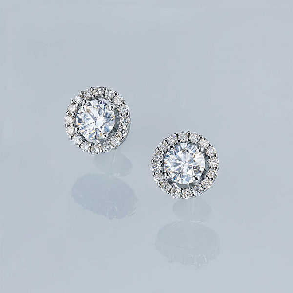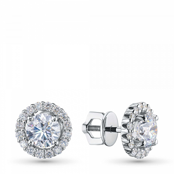 14K White Gold Earring Studs with 34 Round-Cut Lab-Created Diamonds 3.45 CT.TW - an excellent addition to your jewelry collection. Jewelry with natural Diamonds produced at the "EPL". White gold emphasizes the play of light on facets of a diamond, not afraid of water and is suitable for everyday wear. Our goods are sold only in retail showrooms.